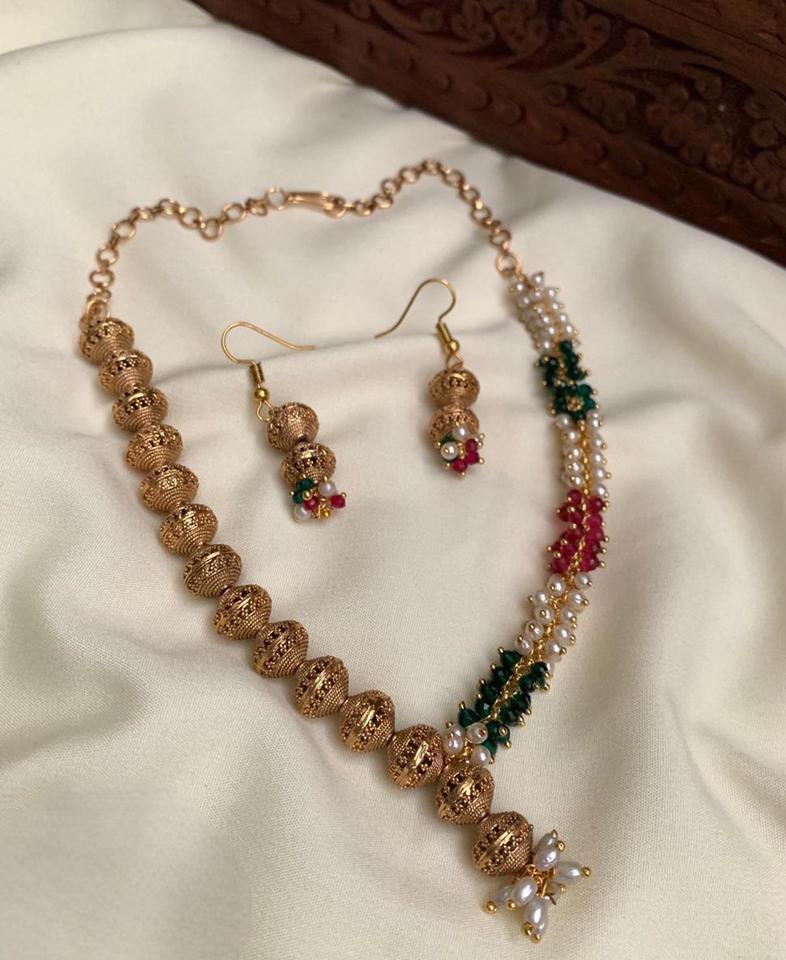 Ensemble collier de perles et de moti à la mode de créateur avec petites boucles d'oreilles Nouveau style de collier pour mariage Wear Party Wear pour les femmes