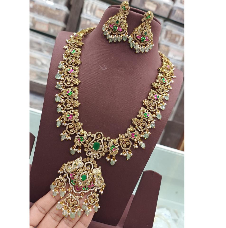 Ensemble de collier plaqué or de qualité supérieure à la mode avec boucles d'oreilles et look de pierre AD pour mariage pour femmes