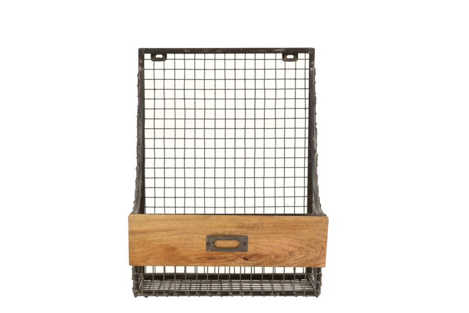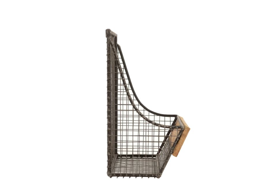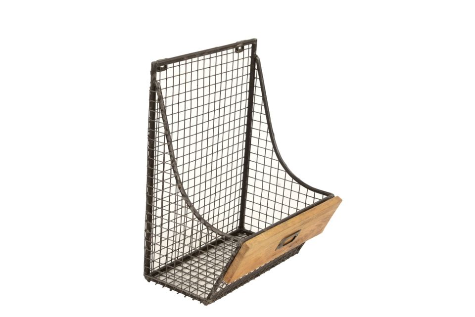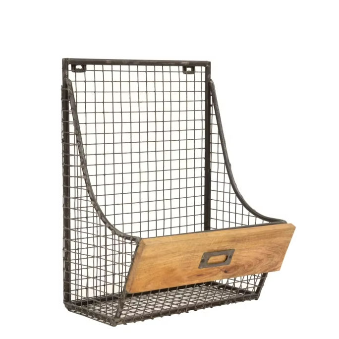 Étagère murale design en fer/bois, porte-revues mural simple en métal/bois de manguier finition naturelle, collection de meubles à prix de gros
