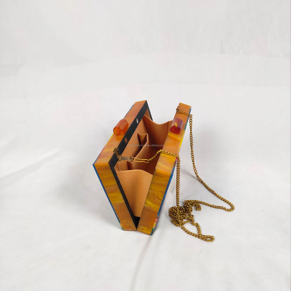 Pochette en résine imperméable de créateur pour femmes, fermeture magnétique, style luxueux, peinte à la main, couleurs personnalisées, objet de collection unique