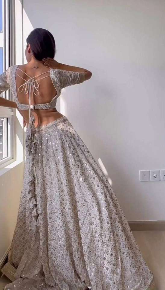 Ensemble Lehengha Choli en fausse Georgette brodée à séquences lourdes de créateur Tissu Georgette Lehenga de qualité supérieure
