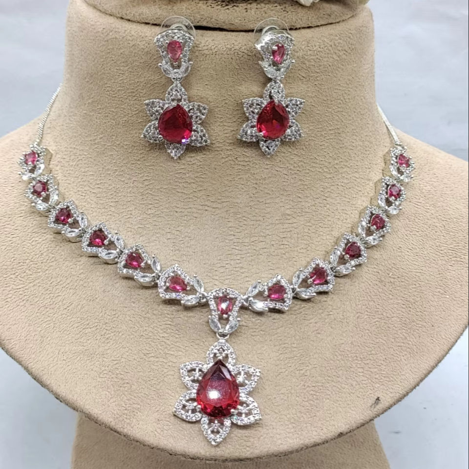 Parure de bijoux de mariage indienne classique de créateur, collier en cristal CZ avec boucles d'oreilles chandelier pour les mariées