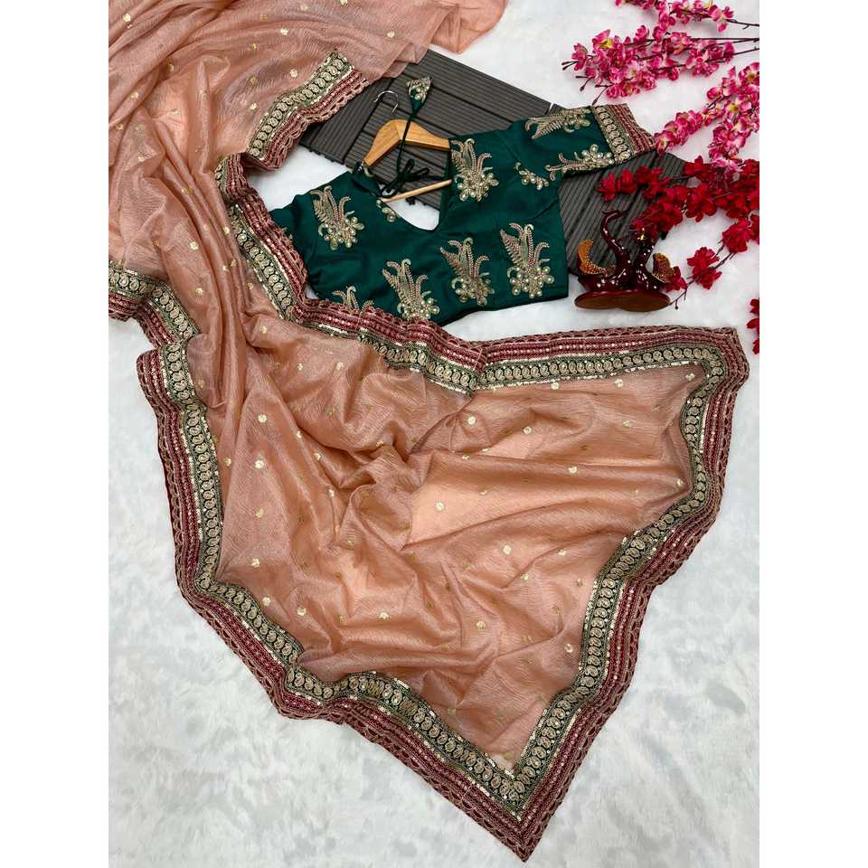 Saree de mariage de créateur avec broderie à paillettes et bordure en dentelle