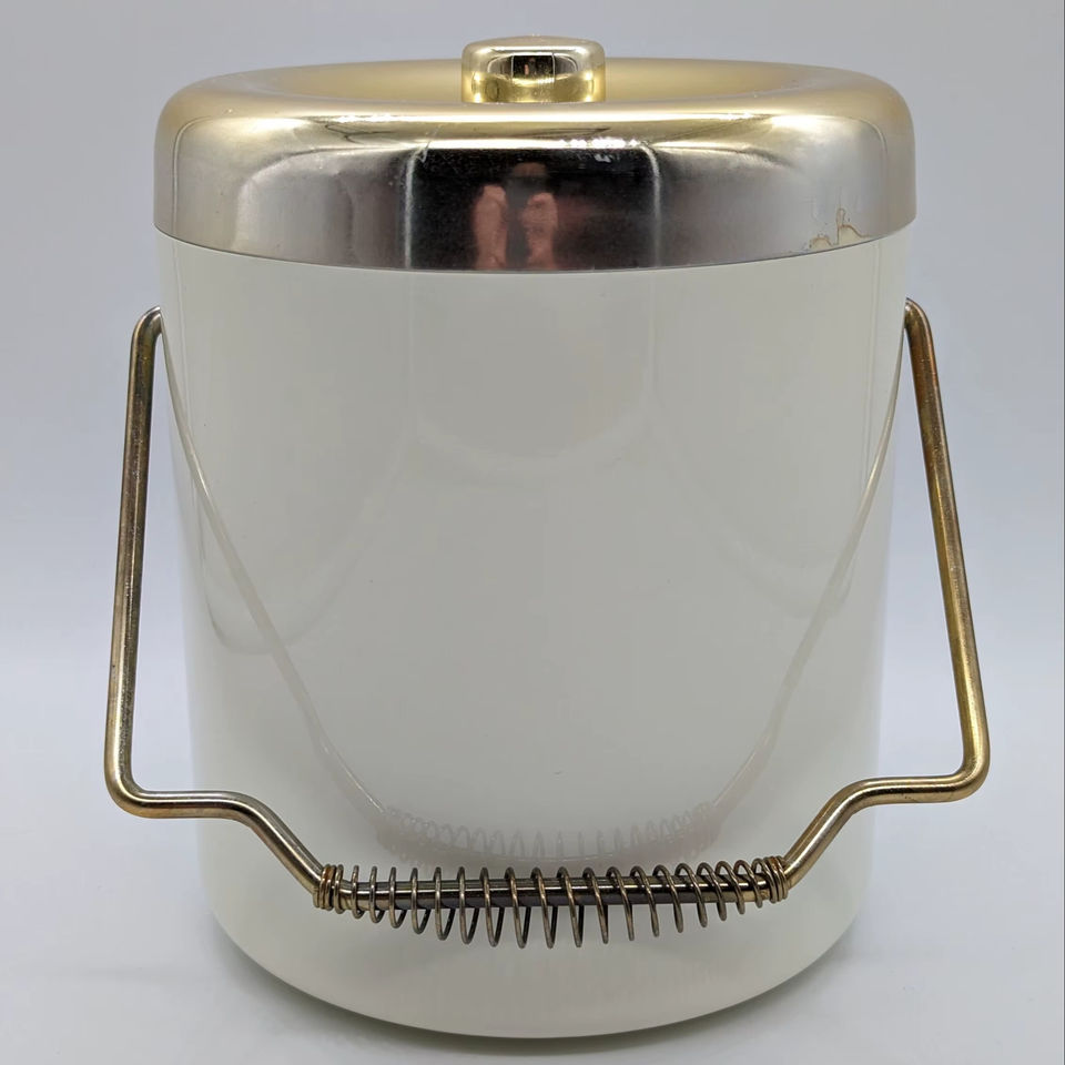 Seau à glace blanc design avec poignée dorée pour bars de luxe à domicile, fêtes, occasions festives et cadeaux, fabriqué en Inde