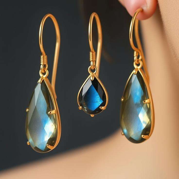 Boucles d'oreilles de créateur pour femmes Labradorite bleue 925 Boucles d'oreilles en argent sterling massif avec pierres précieuses naturelles Bijoux faits à la main