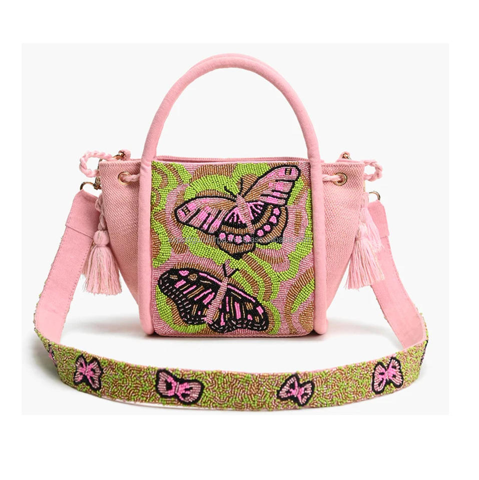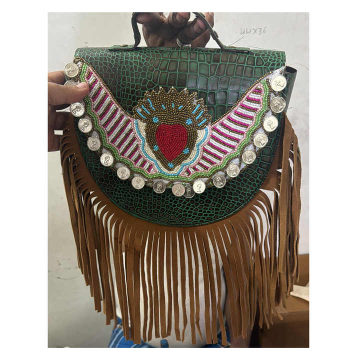 Sac messager en toile de style bohème pour femmes Sac à bandoulière en cuir de vachette perlé fait à la main Broderie Soirée Shopping Indien