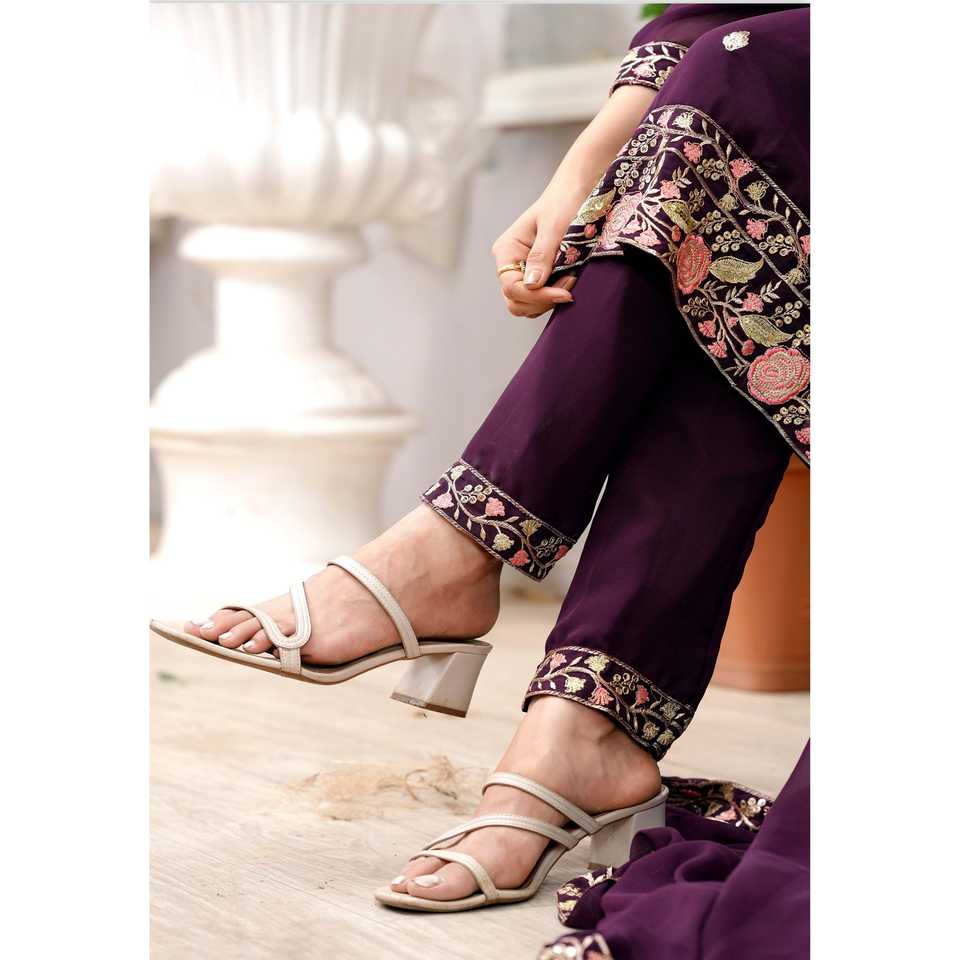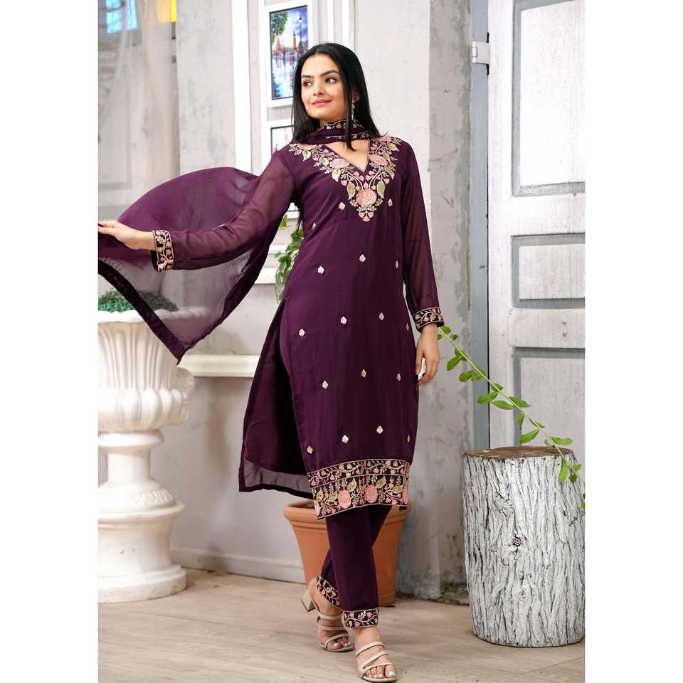 Ensemble de costumes en georgette pour femmes avec broderie séquentielle Œuvre brodée élégante