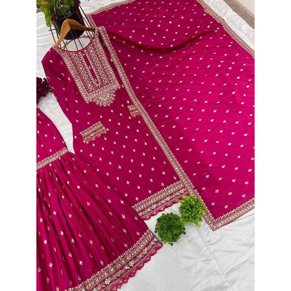 Ensemble de vêtements de fête pour femmes de créateur haut fantaisie avec Dupatta et Sharara entièrement cousu