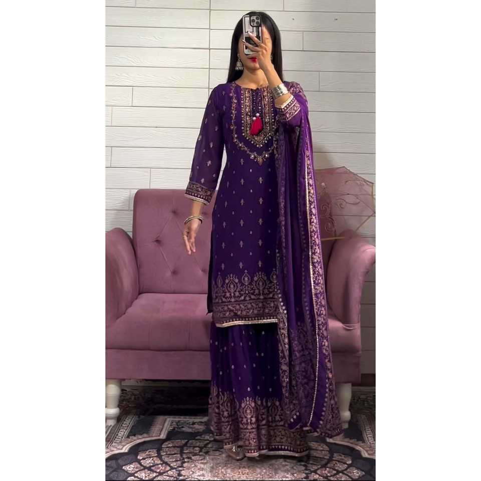 Ensemble de vêtements de fête pour femmes avec haut fantaisie Dupatta Sharara