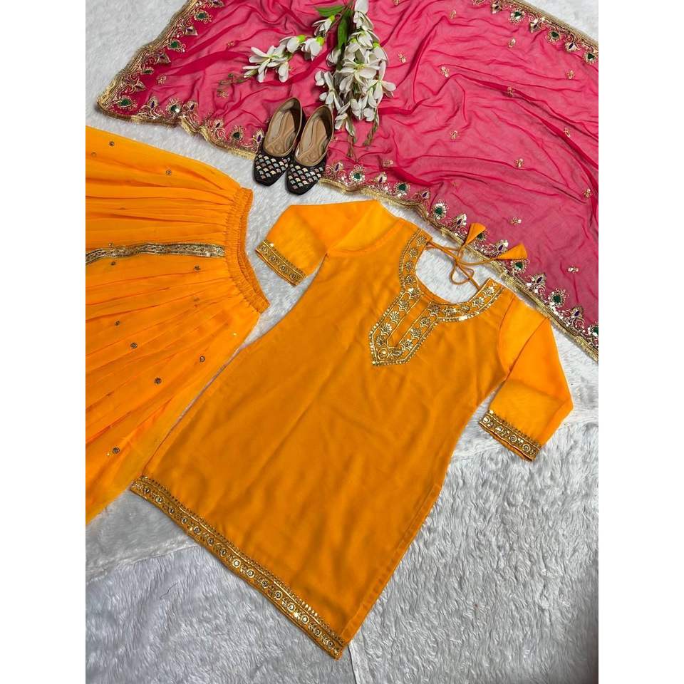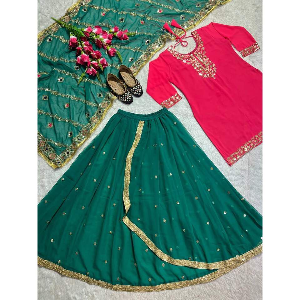 Designer Women's Party Wear Set Top Dhoti Skirt Dupatta