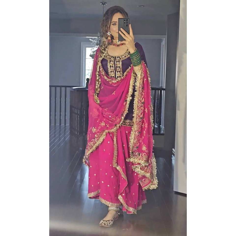 Ensemble de vêtements de fête pour femmes Designer Top Dhoti Jupe Dupatta