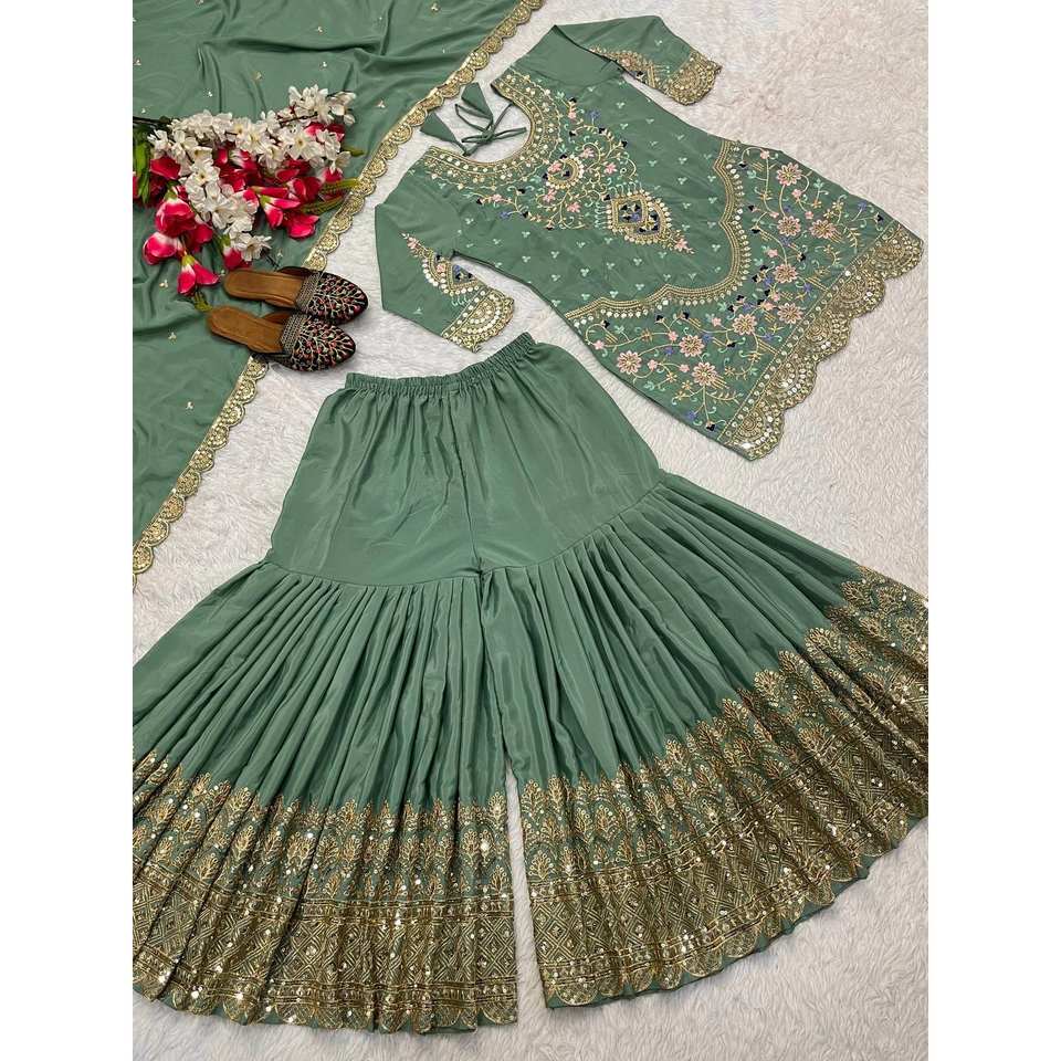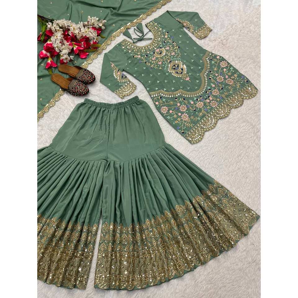 Ensemble de vêtements de fête pour femmes, haut, sharara, palazzo, dupatta