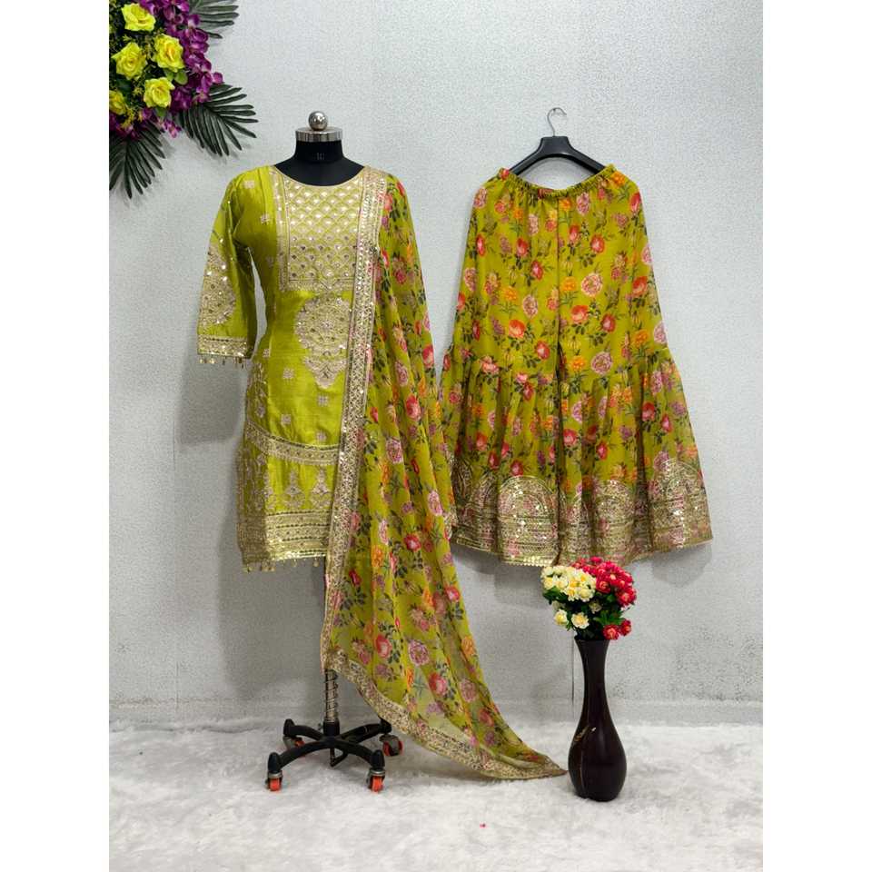 Designer Women's Party Wear Suit Set Top Bottom Dupatta with Fancy Lace