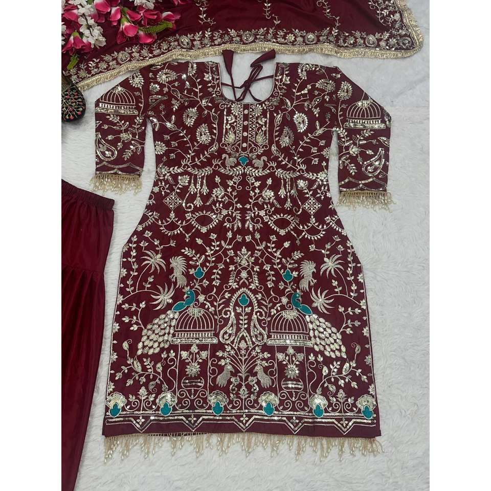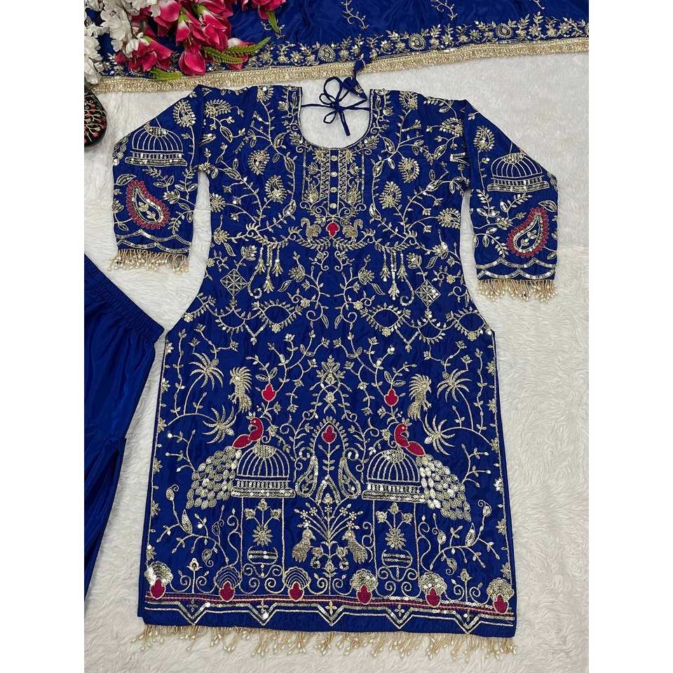 Designer Women's Party Wear Suit Set Top Dhoti Salwar Dupatta