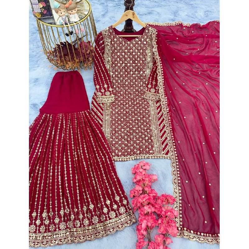 Designer Women's Party Wear Top & Plazzo Dupatta Set Elegant and Stylish