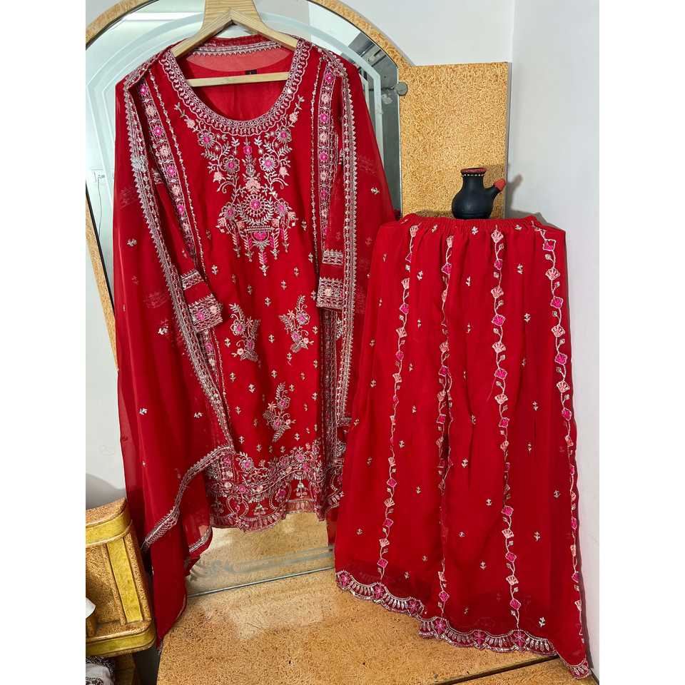Designer Women's Party Wear Top Bottom and Beautiful Dupatta Set