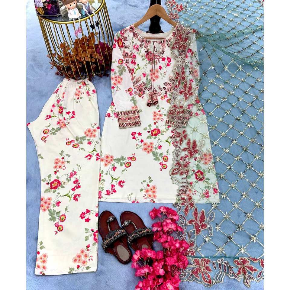 Designer Women's Party Wear Top with Plazzo and Dupatta Elegant Set