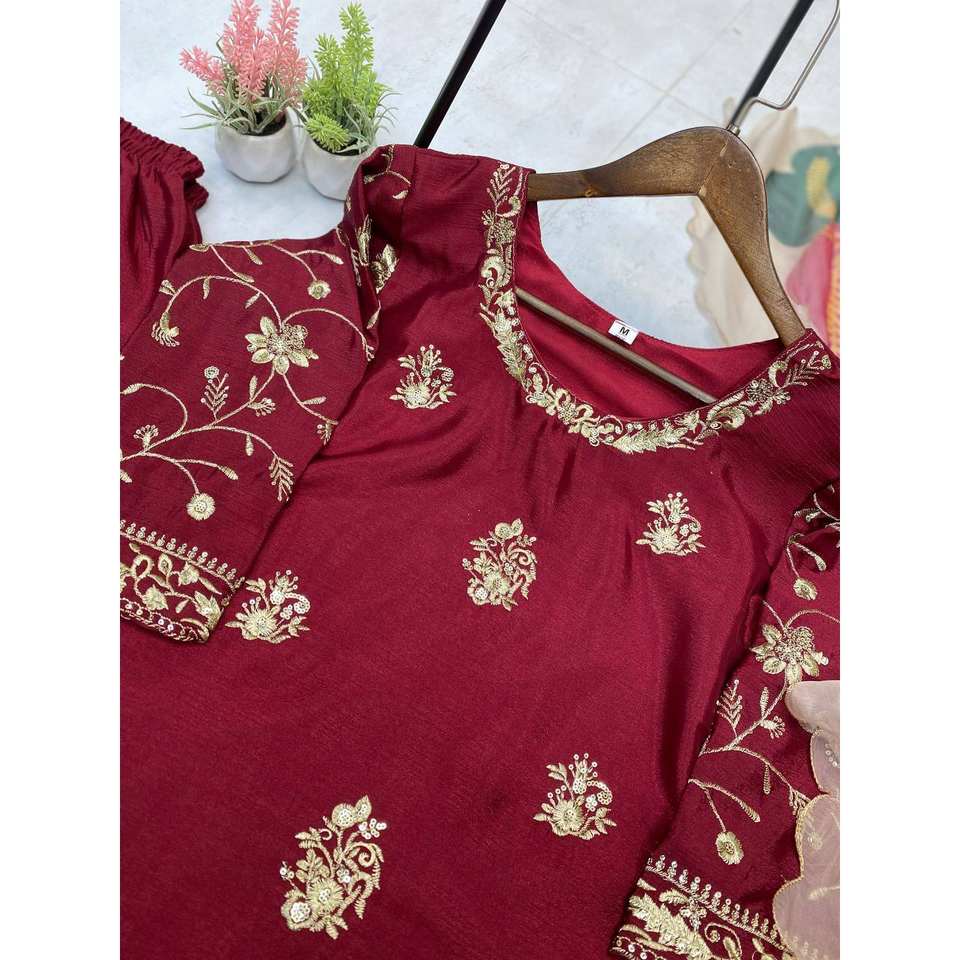 Designer Women's Party Wear Top Bottom and Beautiful Dupatta Set