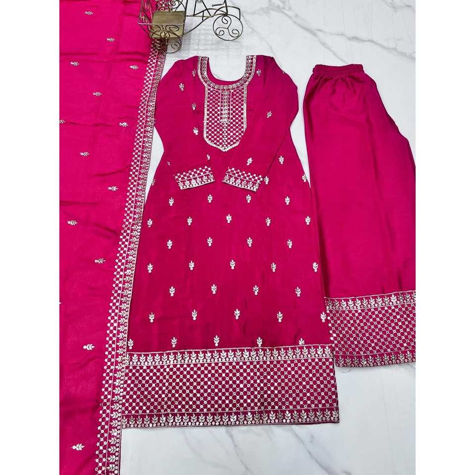 Designer Women's Party Wear Top Pants Dupatta Set with Elegant Lace Work