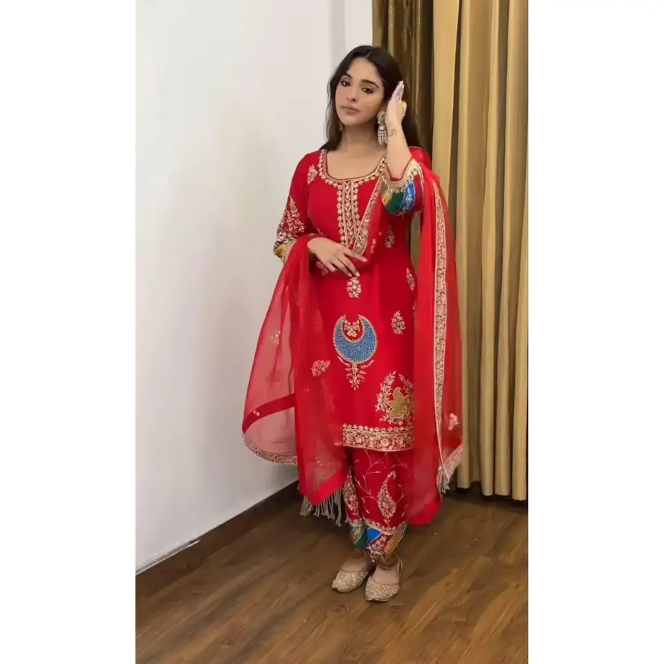 Heavy Net with embroidery and fancy laceDupatta Fabric