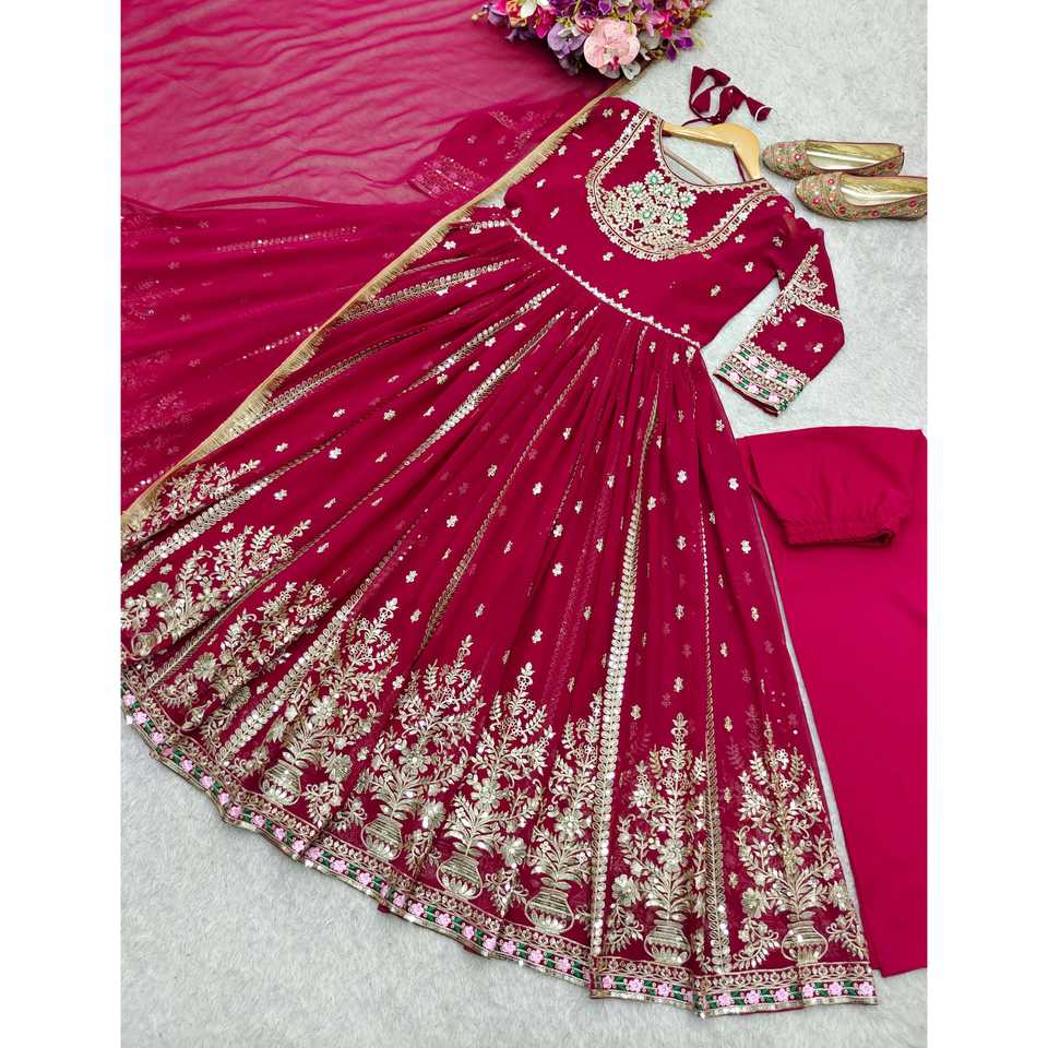 Ensemble de robe pour femme WW Designer, rouge, brodé, avec pantalon et dupatta, travail de séquence, taille M