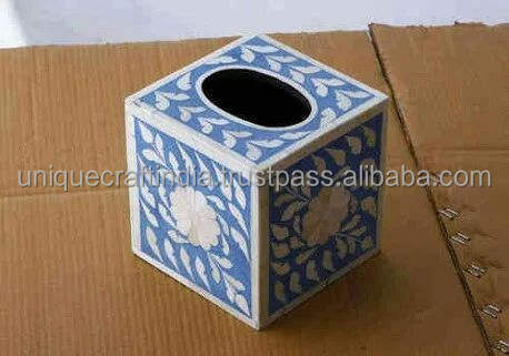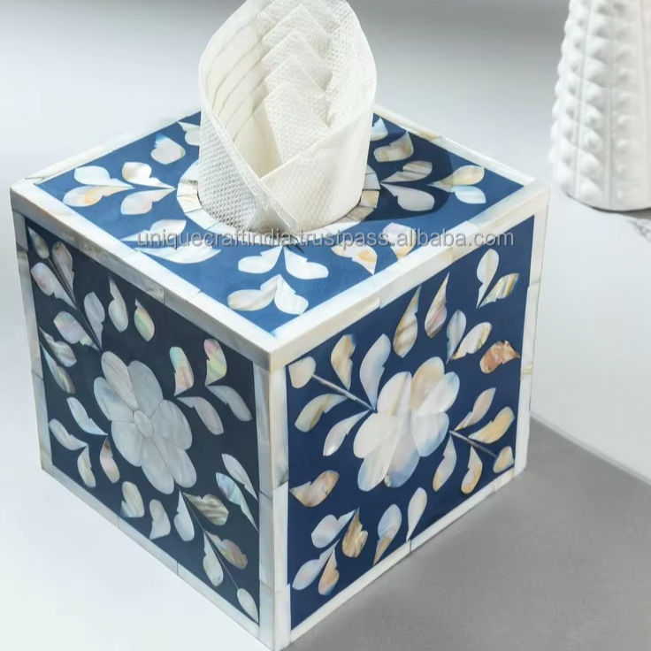 Boîte à mouchoirs en bois avec incrustations de os – Porte-mouchoirs artisanal de luxe écologique pour intérieurs élégants