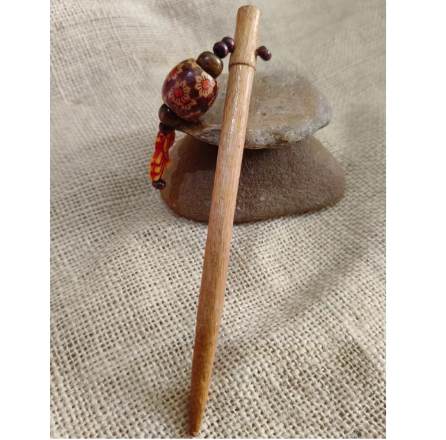 Épingle à chignon en bois de designer, écologique, durable, légère, faite à la main, ornée de perles, accessoire capillaire à grain naturel