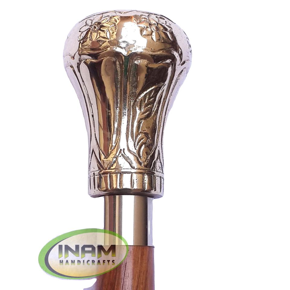 Bâton de marche en bois de styliste avec bouton en laiton poignée ovale/canne de marche en bois avec belle poignée ovale en laiton