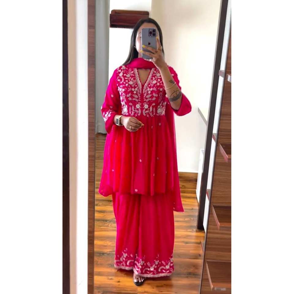 Ensemble de costume en mousseline de soie Designer XL avec broderie de sequins et travail au fil