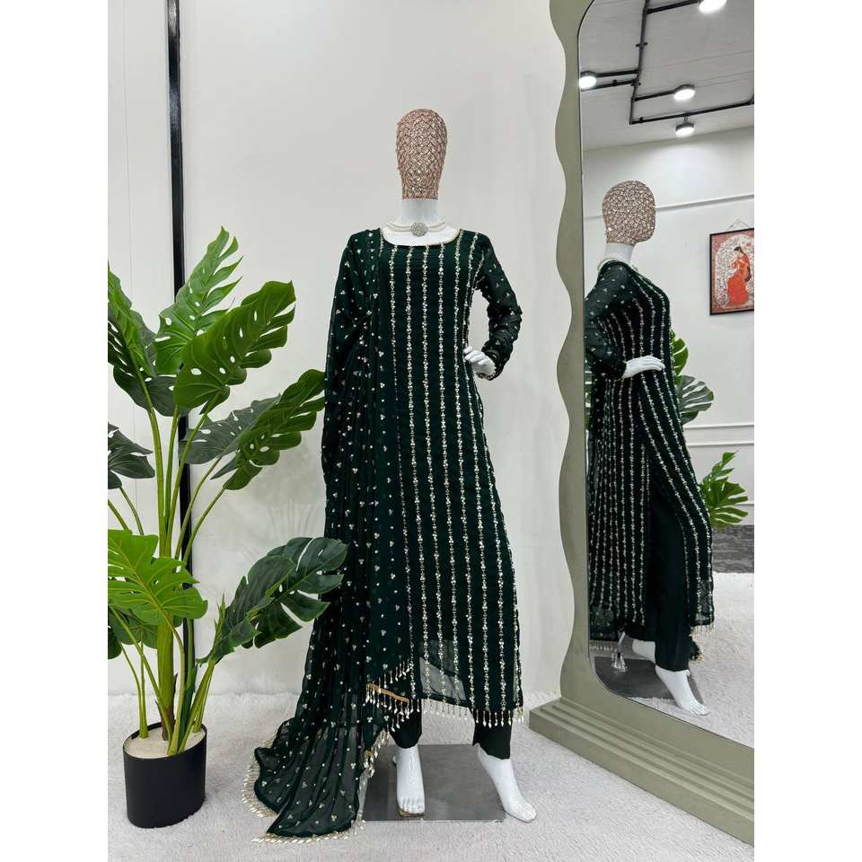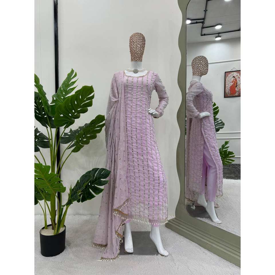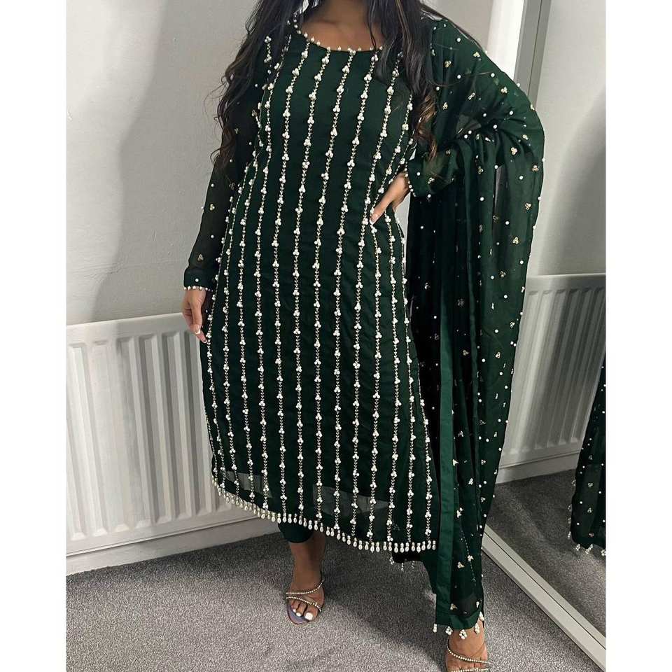 Designer XL Chiffon Suit Set with Fancy Lace Border Moti Thread and Rivet Decor Elegant Lacework