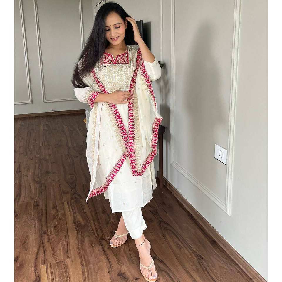Ensemble élégant haut-bas et dupatta en mousseline de soie pour femme, taille XL, avec broderies de sequins et manches trois-quarts