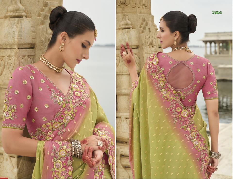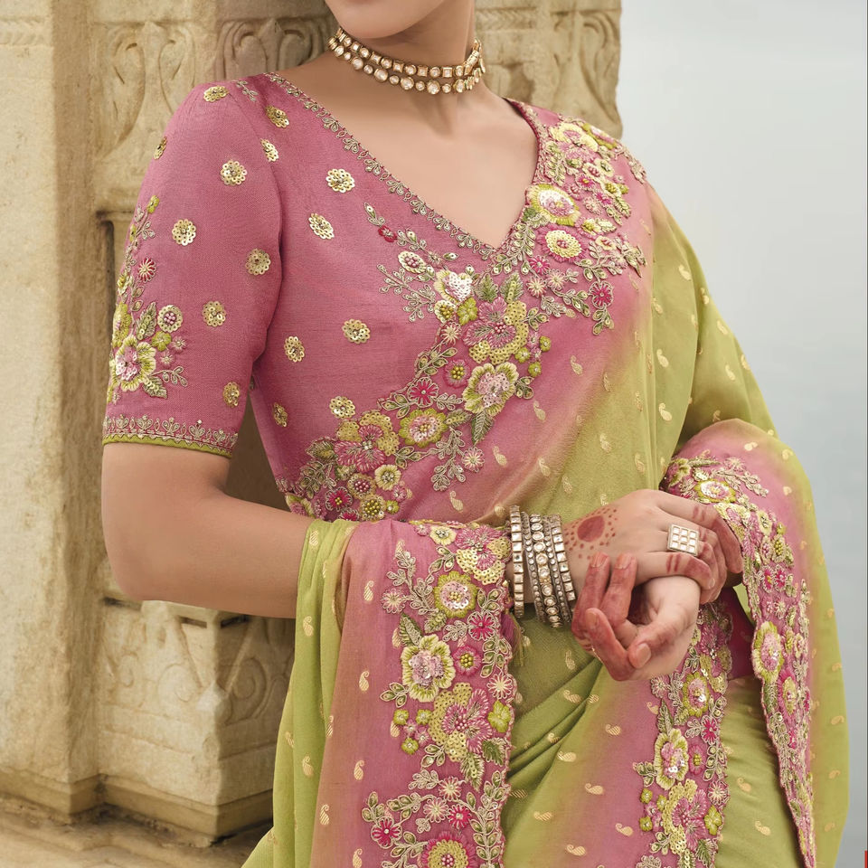 Sari en soie de chiffon de créateur avec broderie en viscose, designs modernes, sari de haute qualité pour mariage et soirée