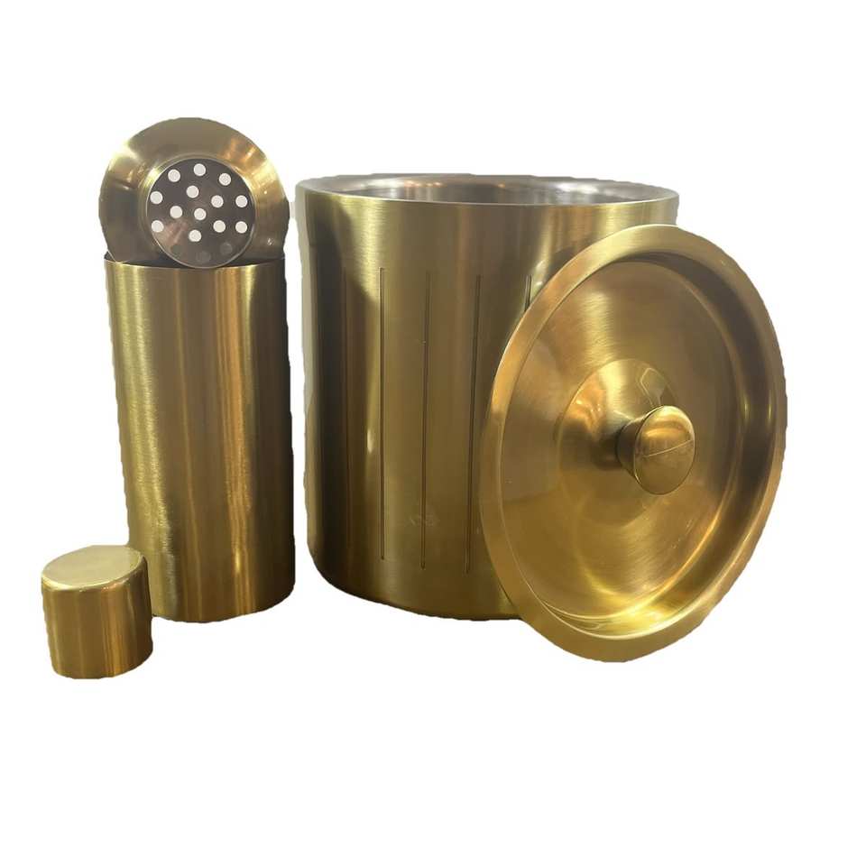 Seau à glace en laiton design avec motifs en relief, accessoire de bar de qualité supérieure pour hôtels, restaurants, salons et réceptions.