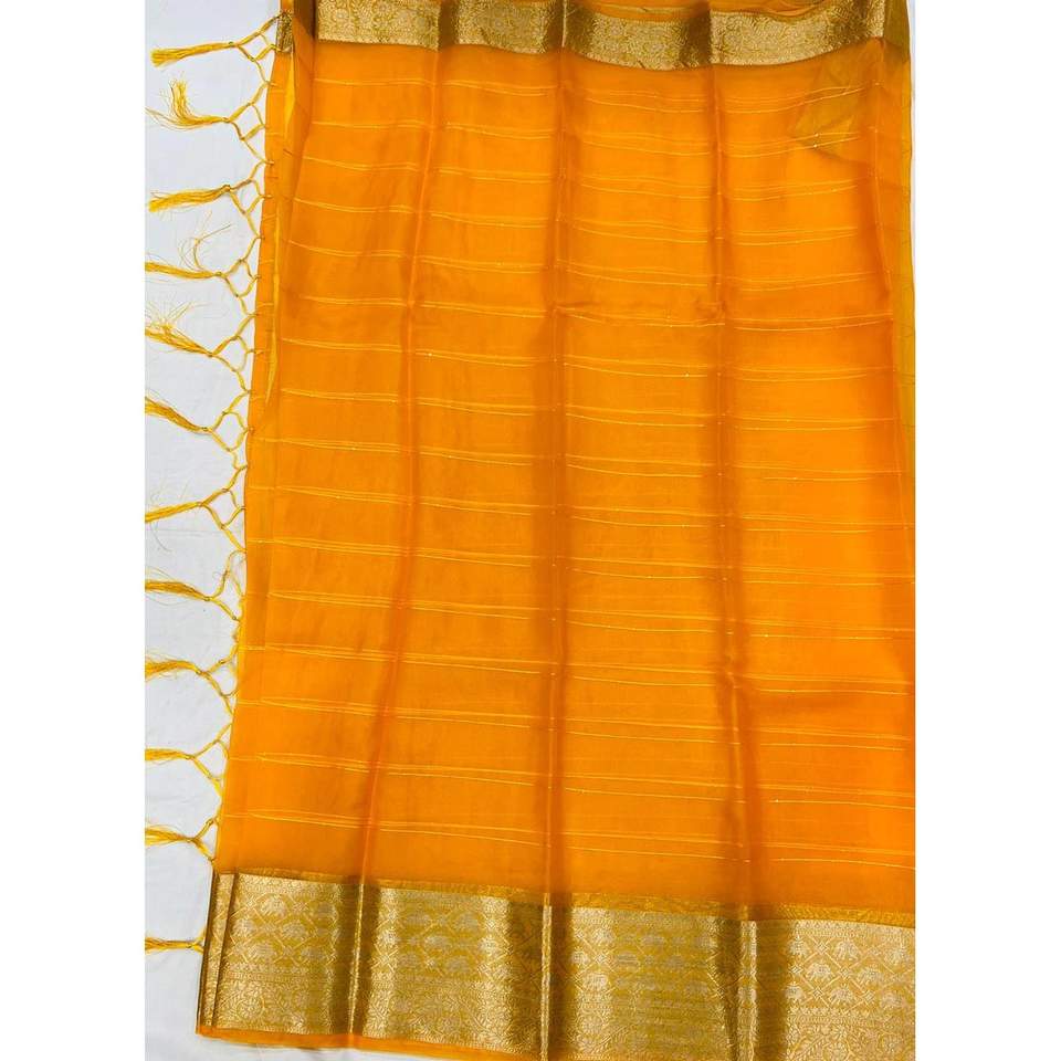 Designer Organza Silk Jacquard Border Saree with Blouse Mustard