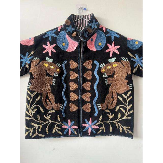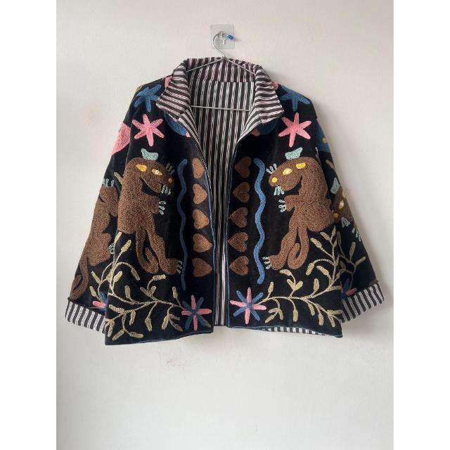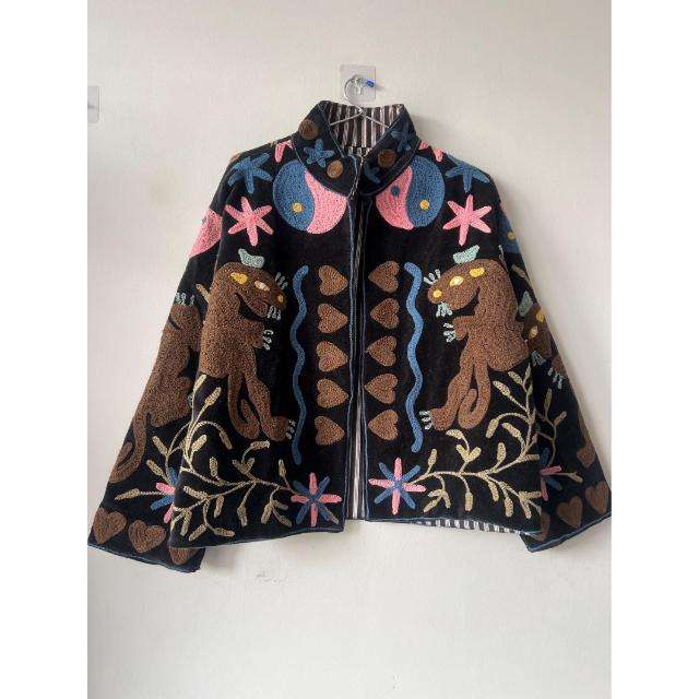Veste Artisanale Ouzbek en Velours Brodé Suzani, Écologique, Style Bohème Tribal, Idéale pour l'Automne, Cadeau Unique pour Elle