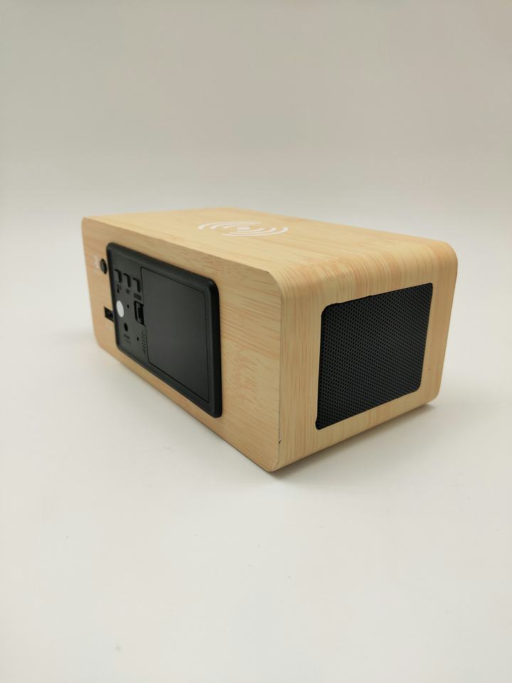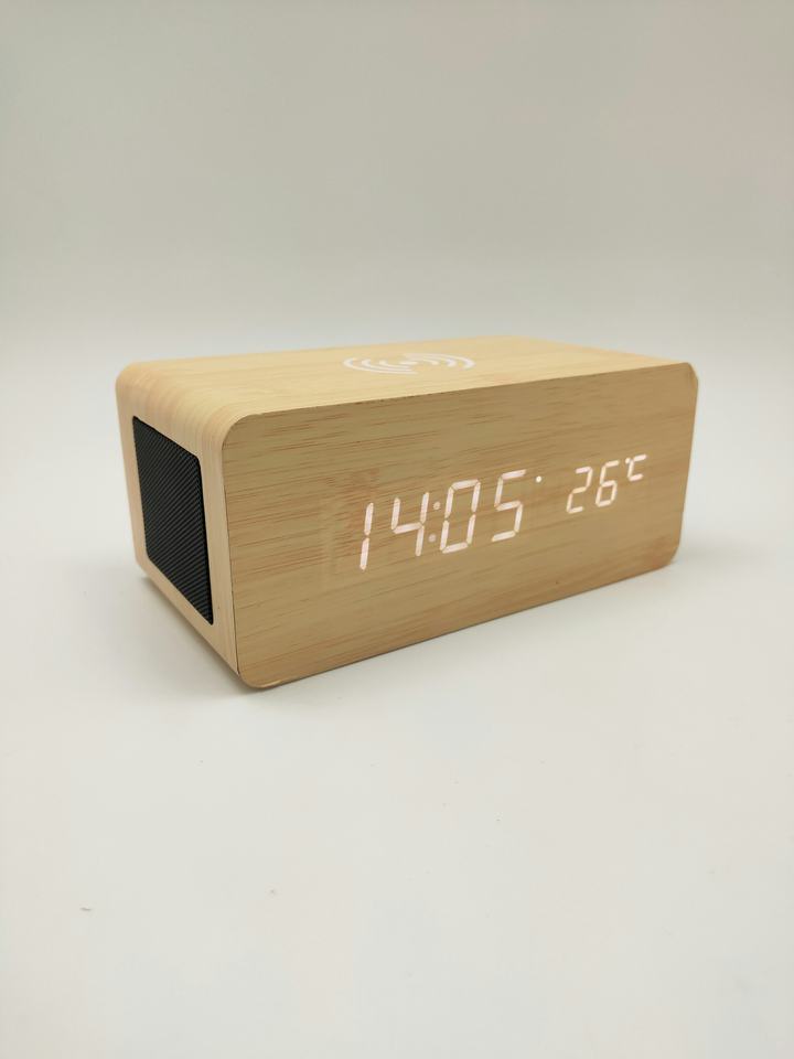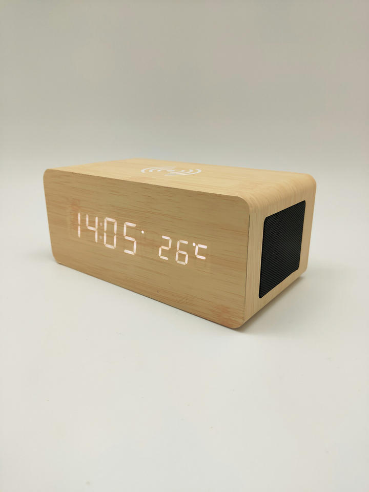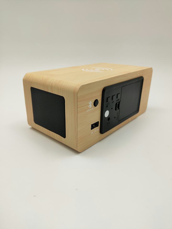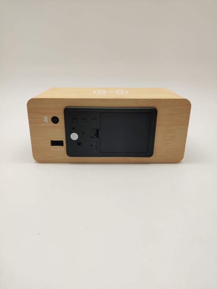 Bureau et Table numérique sans fil téléphone charge température humidité bambou bois LED Snooze réveil avec haut-parleur Bluetooth