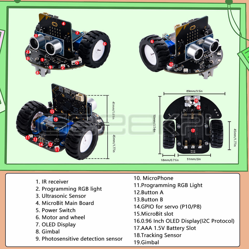 Voiture programmable DeskPi MicroCar conçue pour Microbit, écran OLED 0,96 pouces, capteurs, ultrasons, programmation, télécommande
