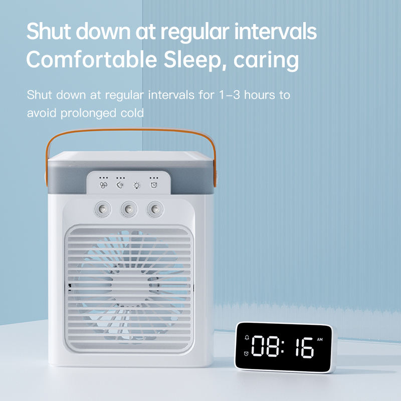 Ventilateur de climatisation de bureau, mini humidificateur à pulvérisation, lumière colorée, ventilateur rafraîchisseur d'air portable avec minuterie personnalisée 2h/4h/8h