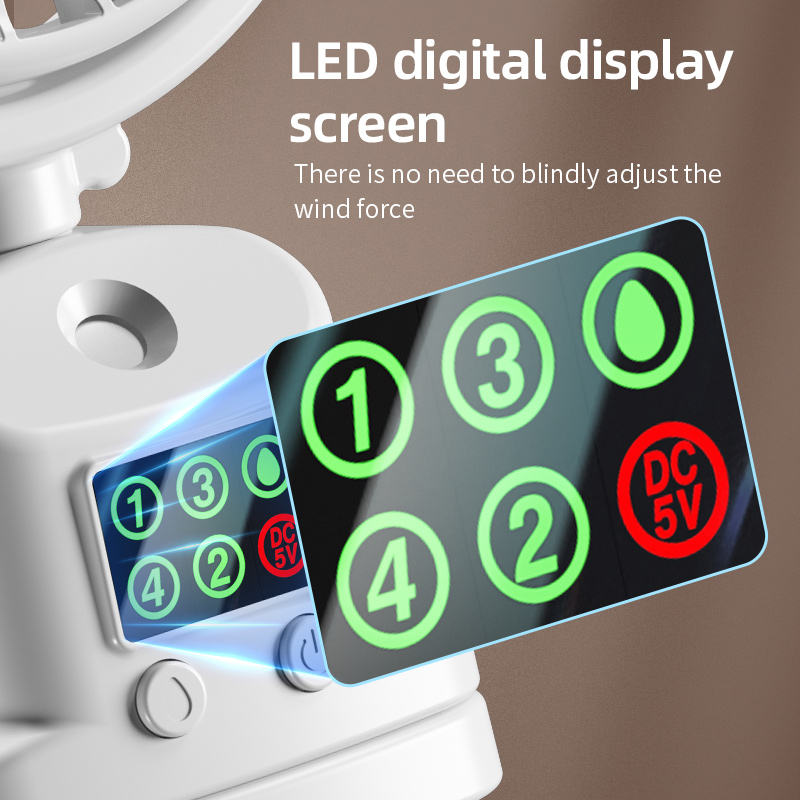 Clip de bureau ventilateur brumisateur affichage numérique nouveau Portable USB charge haute puissance éolienne longue endurance 4 vitesses ventilateur de pulvérisation