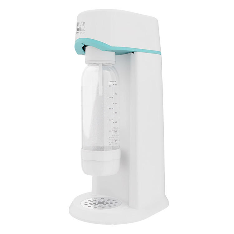Machine à eau gazeuse manuelle de 1 L, design minimaliste, utilisation domestique, plastique froid et acier inoxydable, fonctionnement à une seule pression
