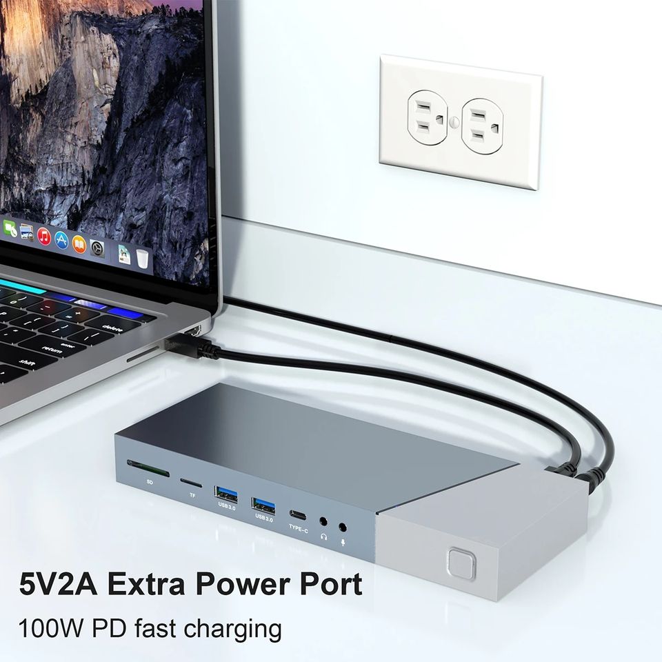 Ordinateur de bureau Ordinateur portable Hub 16 Ports Tripple HDMI Moniteur Affiche Type C Alt Mode DisplayLink Activer USB A C Docking Station