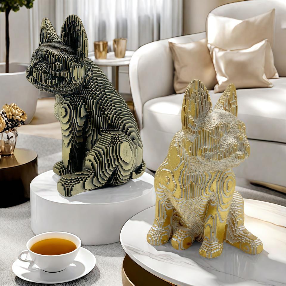Décoration de bureau moderne et créative en résine époxy, artisanat sculpté, luxe léger, blocs de construction pour salon, bouledogue assis, art populaire