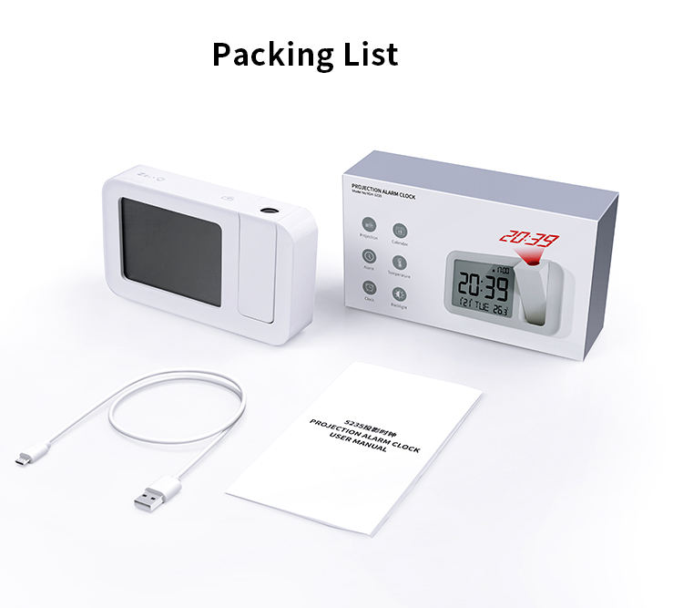 Horloge de projection électrique de plafond de bureau avec affichage laser LCD température et heure mini-projecteur horloge pour personnes malvoyantes
