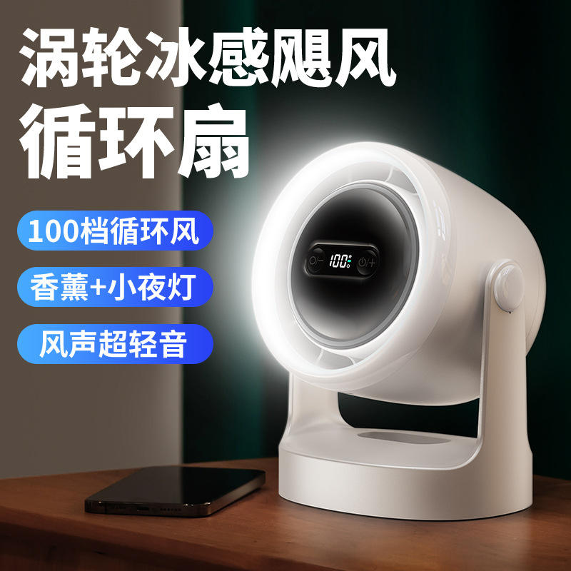 Mini ventilateur de bureau de 4 pouces, rechargeable, alimenté par USB, fonctionnement silencieux, avec lumière nocturne, aromathérapie, air circulant