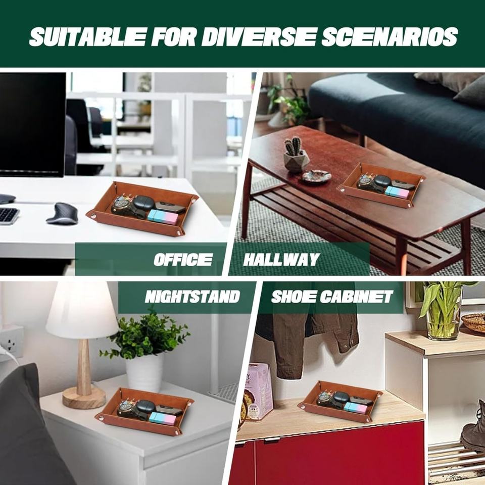 Desktop Nightstand Entryway Valet Tray Desktop Storage Organizer PU Leather Catchall Holder Bedside Vanity Foldable Tray