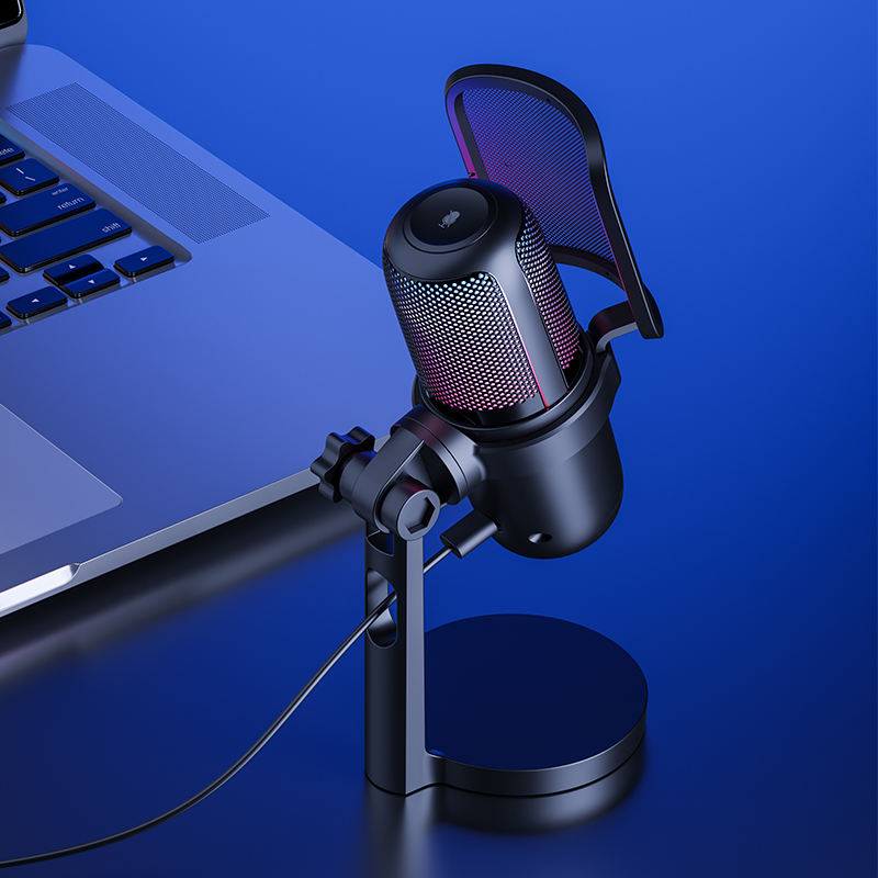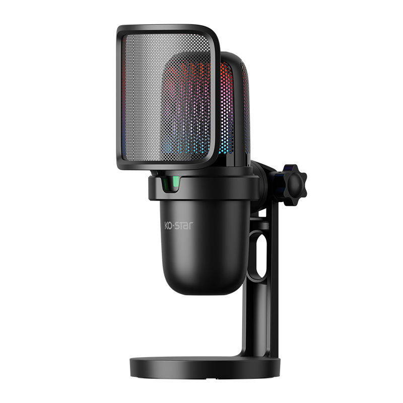 Réduction de bruit, Léger, Portable, Microphone à condensateur, Avec éclairage RVB, Avec Carte SonFonction