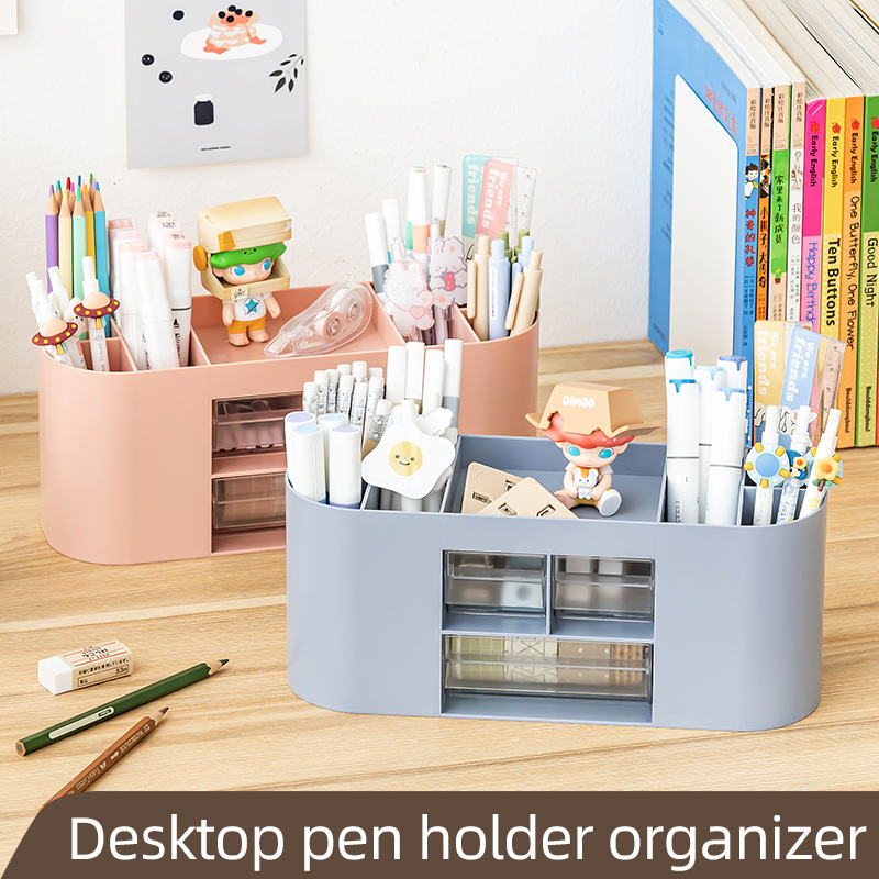 Boîte de rangement de bureau multifonctionnelle simple pour fournitures de bureau, grande capacité, porte-stylos en plastique