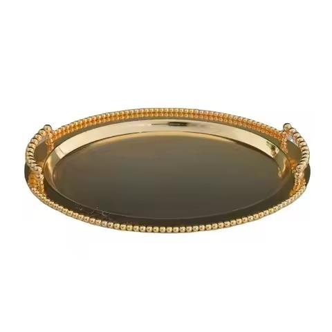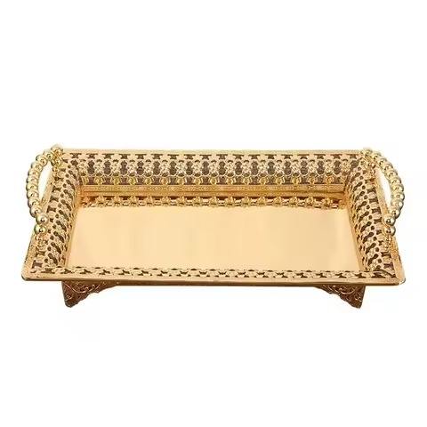 Plateau rectangulaire en métal pour la présentation de desserts, plateau de service luxueux en or avec poignées dorées