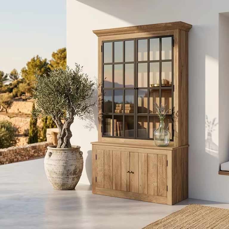 Console de rangement en teck massif écologique et durable Desy, finition naturelle, meubles contemporains pour le salon