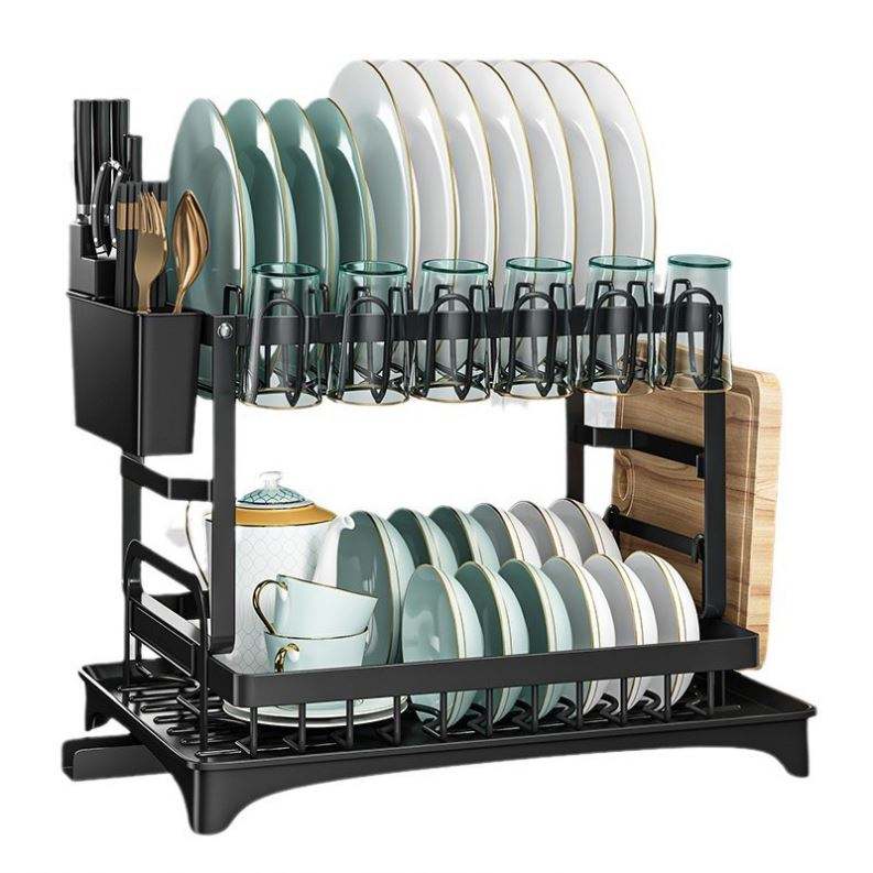 Égouttoir à vaisselle métallique à 2 niveaux détachable avec support rotatif pour évier, idéal pour organiser et sécher les assiettes et bols